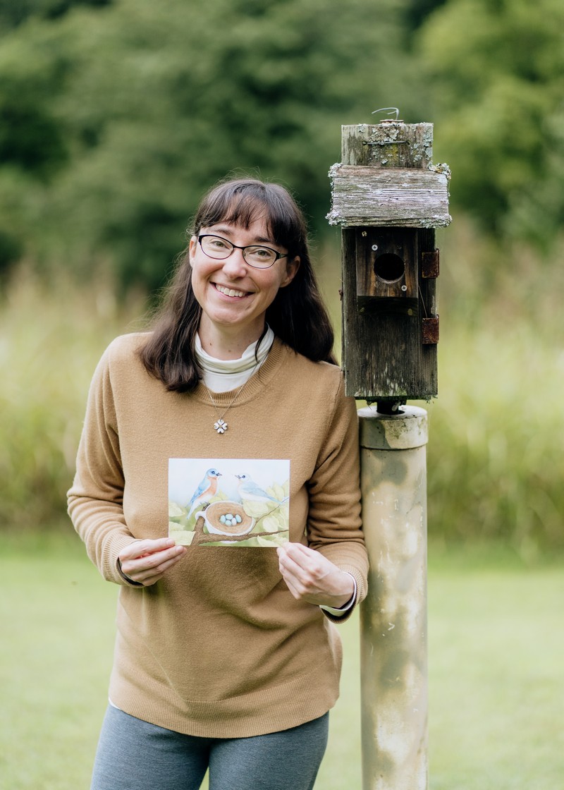 (Credit: Brett Pitts Photography 2025) I'm a writer, artist and naturalist, and I love my work! I hand-draw designs for Ripples Greeting Cards as a fundraiser to offset costs of our conservation projects, and I also write for magazines and a local historical journal. My favorite hobby is watching wildlife, and I'm frequently out in the woods or walking country roads connecting with nature or participating in citizen science projects like NestWatch. I love reading books, and cuddling with my husband Ryan, who has been my amazing life partner for over 17 years! We also enjoy traveling when we get the chance, and are lifelong learners.